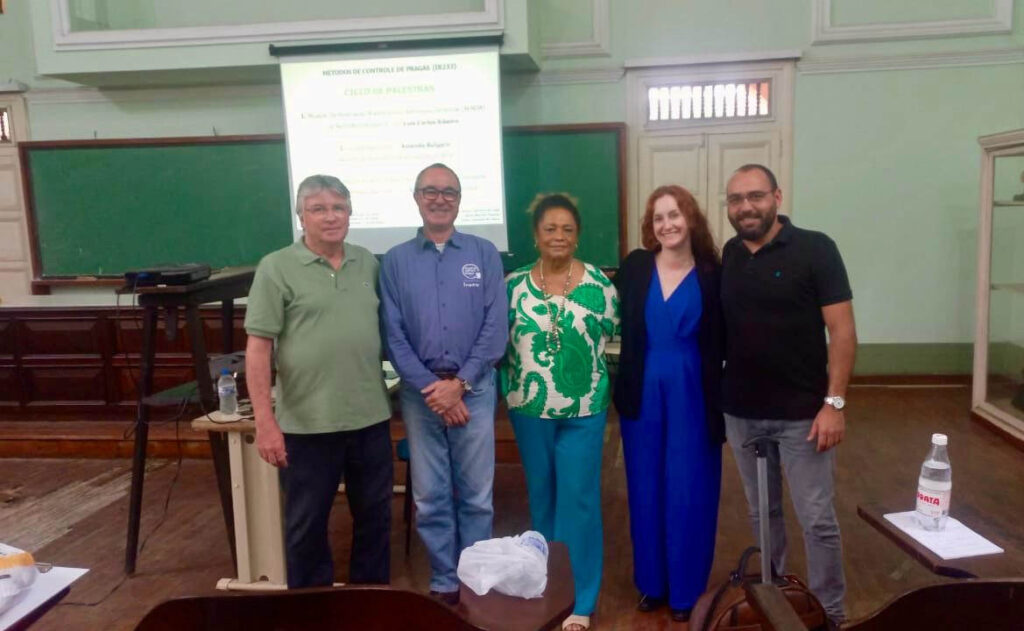 No último dia 31 de março, alunos do curso de Agronomia da Universidade Federal Rural do Rio de Janeiro (UFRRJ) participaram de um ciclo de palestras focado em “Métodos de Controle de Pragas”. O evento, realizado no Instituto de Ciências Biológicas e da Saúde, contou com a participação da Associação Nacional das Empresas de Produtos Fitossanitários (AENDA) e do Instituto Nacional de Processamento de Embalagens Vazias (inpEV).